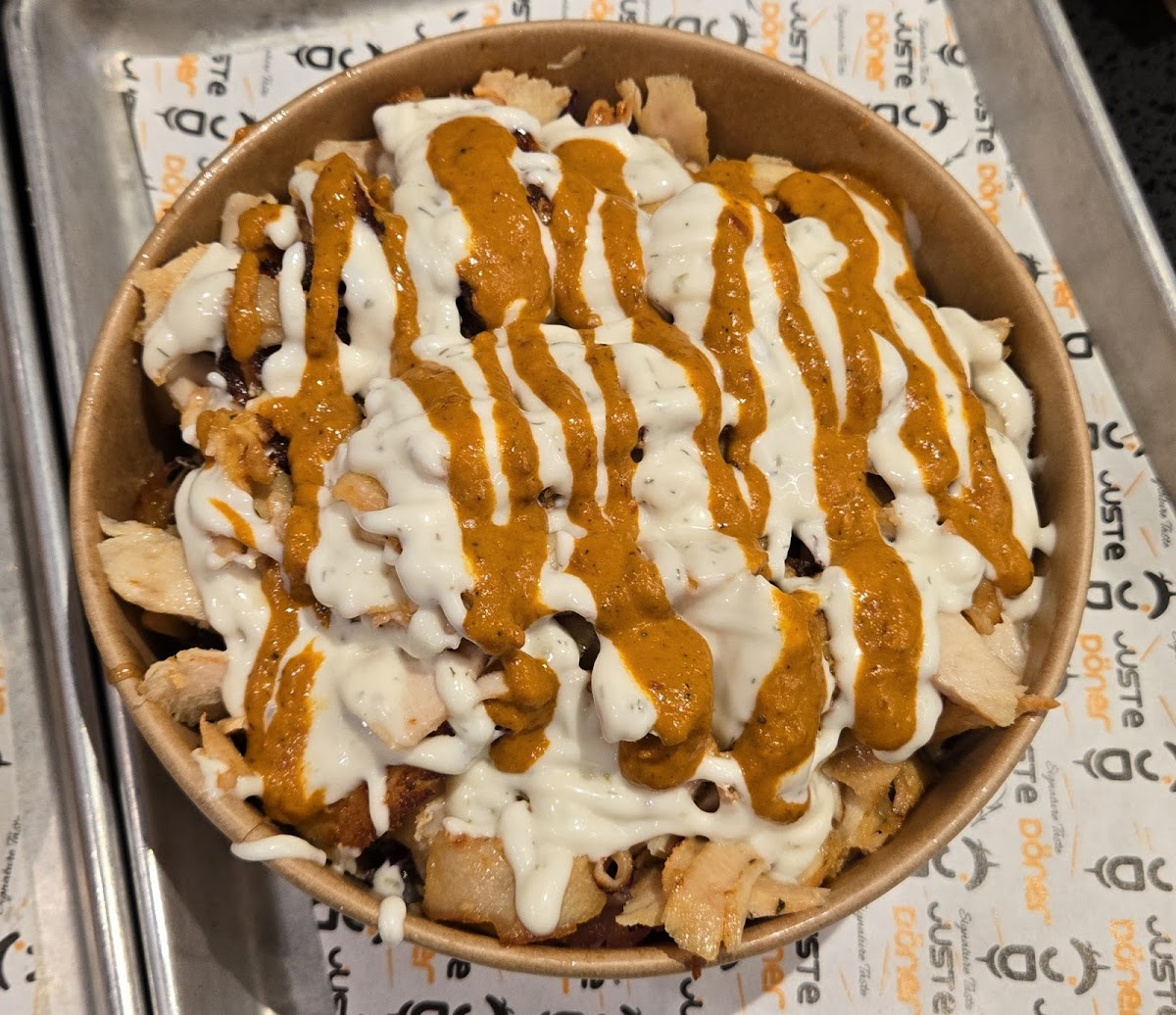 At JUSTE DÖNER, the star of the show is undoubtedly the doner, prepared fresh and bursting with flavor. Their menu features an impressive selection of poutines, including the indulgent Kamikaze Poutine, a feast of doner meats, tomatoes, onions, and red cabbage, all smothered in their special spicy sauce and topped with their house sauce. It's a dish that does justice to both traditional and modern poutine cravings, and at just CA$18.49, you’ll find it hard to resist taking a second helping. For a more classic experience, you can't go wrong with the Doner Poutine, which is equally delightful with your choice of savory meats at only CA$17.49.